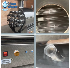 وجود أكثر من لمبة UV داخل الجهاز يعزز من كفاءة التعقيم ويجعل الأداء أكثر استقرارًا، خاصة في الاستخدامات الكبيرة مثل المطاعم أو المصانع. بالإضافة إلى ذلك، التوصيلات الكهربائية الظاهرة تدل على نظام تحكم دقيق يضمن تشغيل اللمبات بكفاءة ومراقبة الأداء بشكل مستمر.