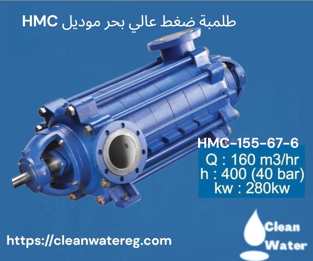 كلين ووتر شريكك الموثوق في حلول محطات تحلية مياه البحر، نوفر طلمبات بستيمية، طلمبات بوستر، منظومات توفير الطاقة، Turbo Feedco HPB_160 وTurbo Halo 900 لتشغيل محطات التحلية بكفاءة عالية، من أول خطوة في التصميم وحتى التشغيل الكامل بأعلى اعتمادية.