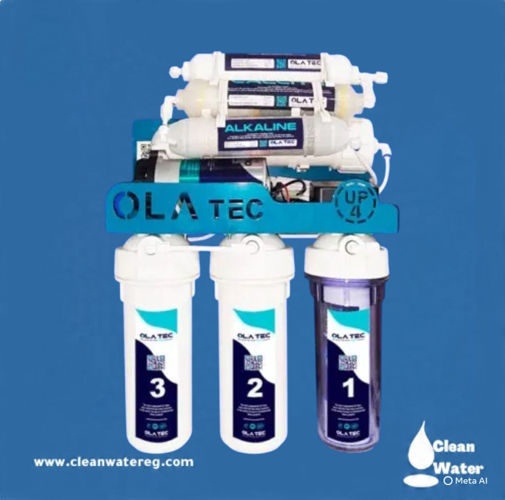جهاز UP4 من أولا تك نظام التناضح العكسي RO بسبع مراحل، مكونات أصلية من تايوان والهند وفيتنام، خزان تايواني TP19 ومضخة 100 جالون — نقاء وذو قابلية تشغيل سهلة بسعر منافس وضمان سنتين.