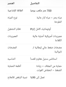 محطة تحلية مياه البحر والآبار  700 متر مكعب يوميًا
