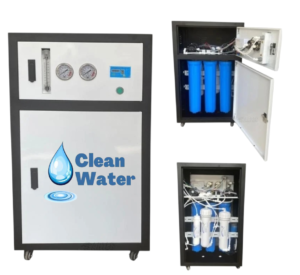 محطة تحلية 800 جالون من كلين ووتر تعتمد على نظام التناضح العكسي RO وتعمل كوحدة متكاملة جاهزة للتركيب، وتشمل: